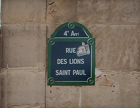 Son nom rappelle soit des lions peints sur la porte de l’hôtel Saint-Paul, soit la ménagerie de Charles V et Charles VI transférée à la maison royale des Tournelles vers 1490.