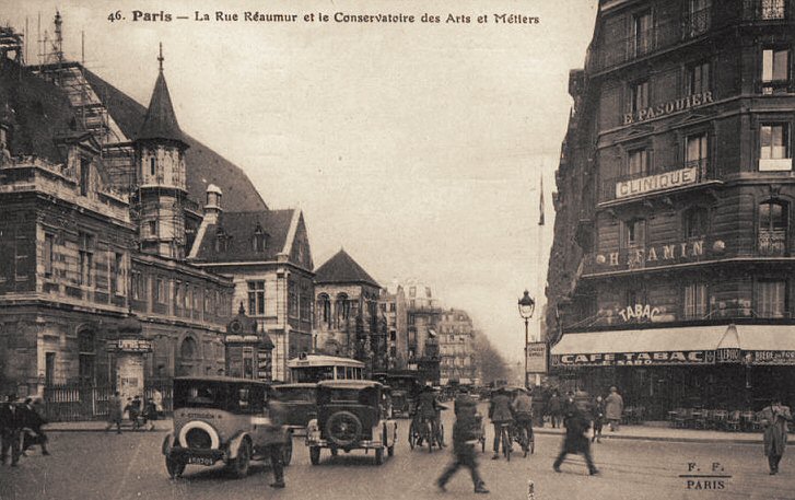 La rue Réaumur et le Conservatoire des Arts et Métiers vers 1930.