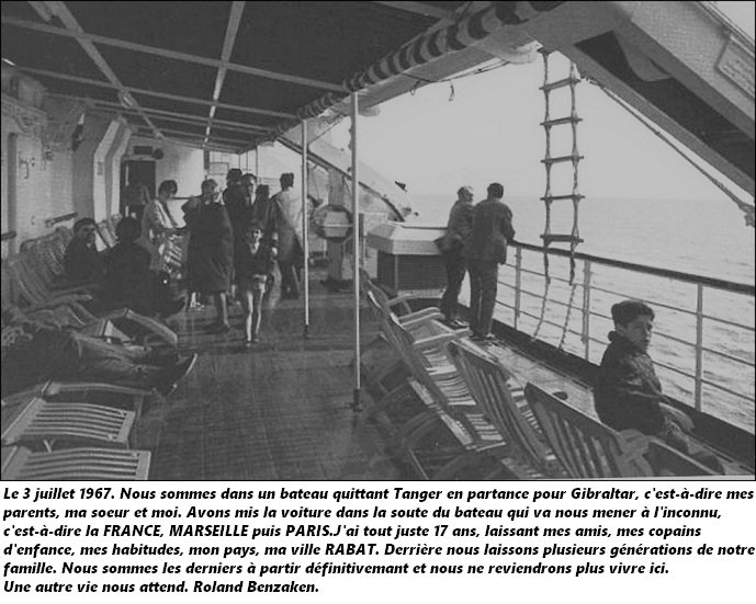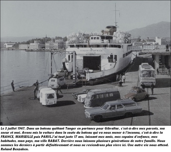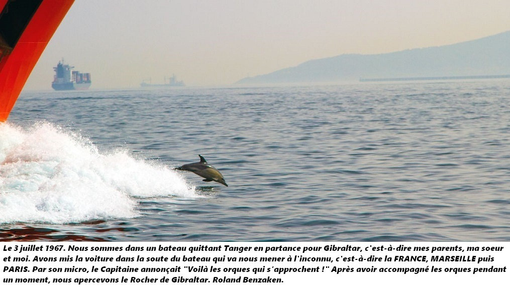 Nous sommes dans un bateau quittant Tanger en partance pour Gibraltar, c'est-à-dire mes parents, ma soeur et moi.