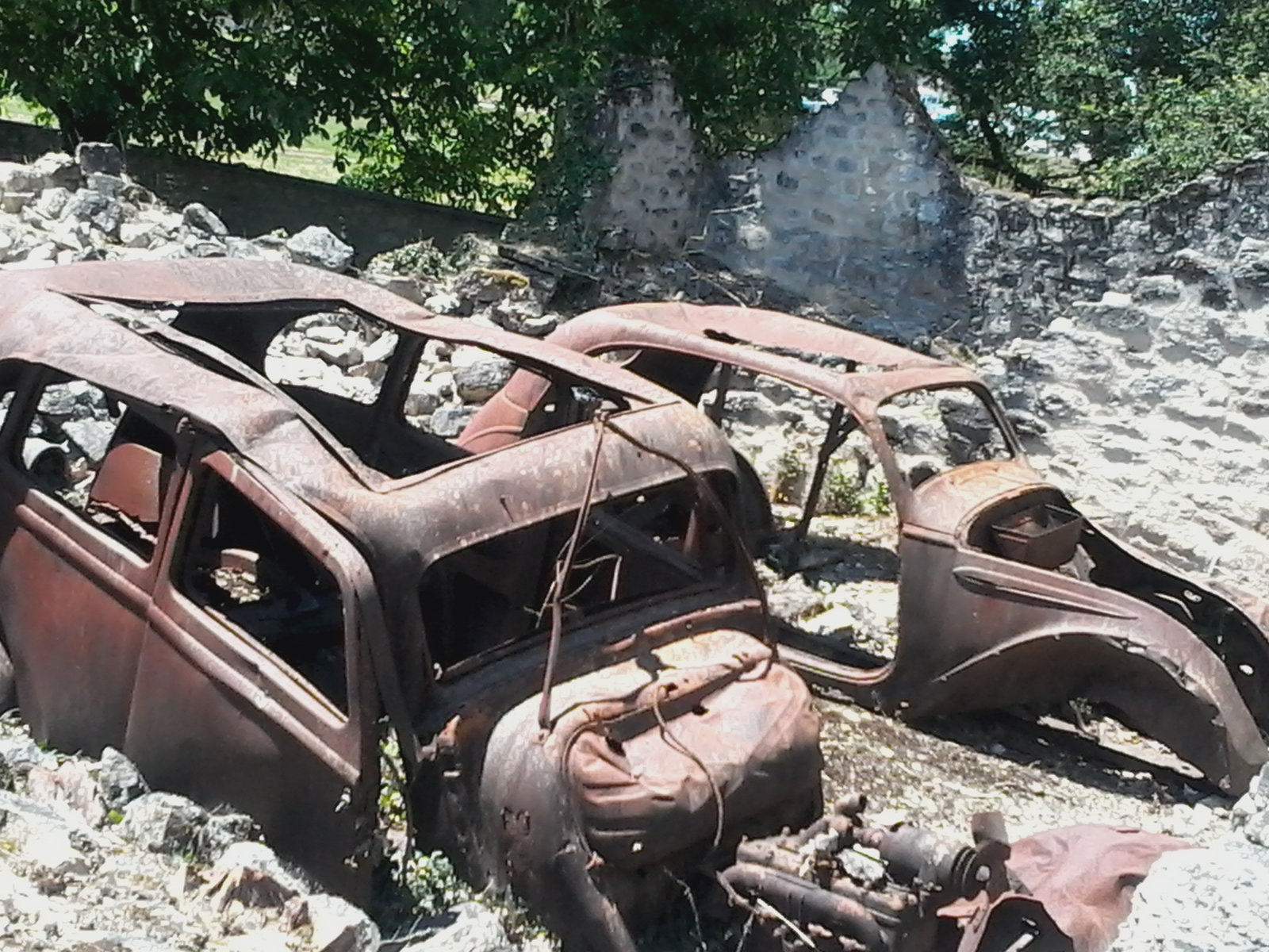 J'ai visité les ruines du village d'Oradour S/Glane en juin 2017. Il y règne une atmosphère triste et beaucoup de silence. L'église garde les impacts des balles tirées par les SS.