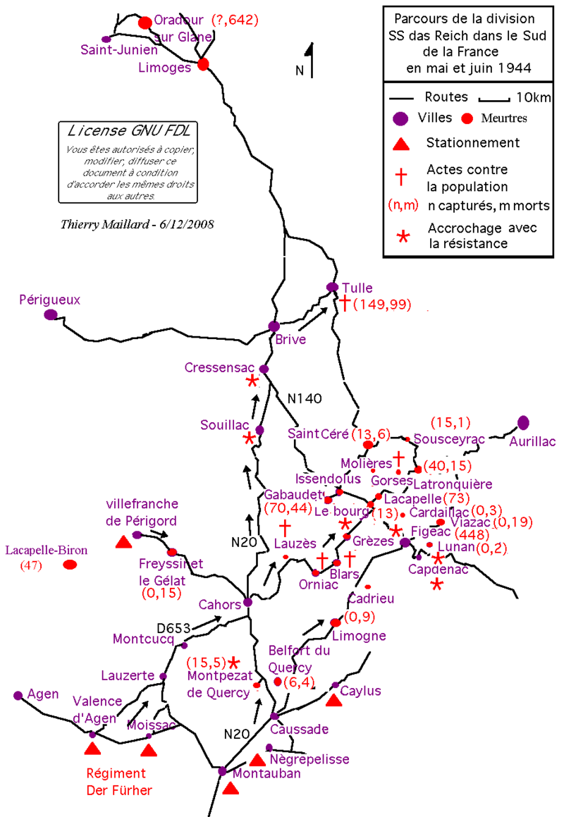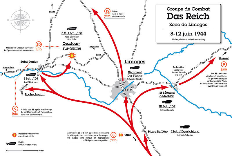 Déploiement de la 2e division SS Das Reich dans la zone de Limoges, prélude au massacre d'Oradour-sur-Glane le 10 juin 1944.