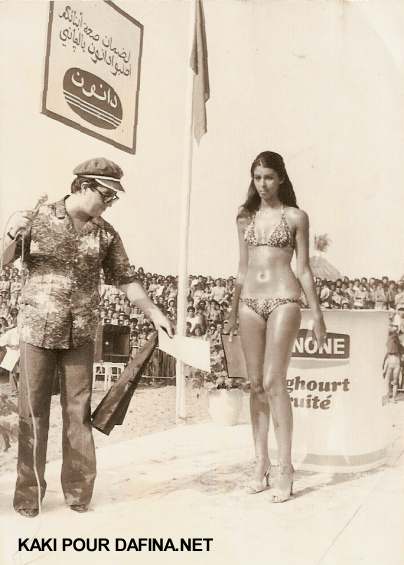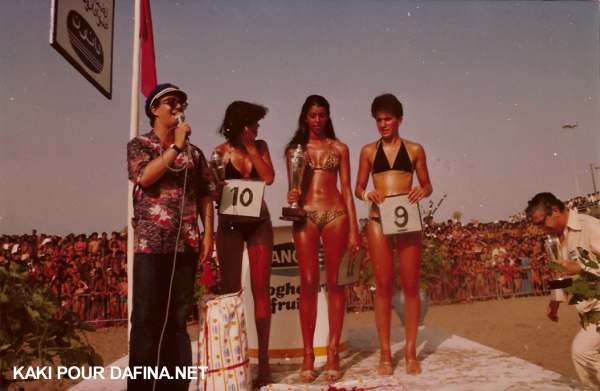 Pendant ce temps là un demi siècle avant c'est notre KAKI qui présentait à Casablanca Madame Muscle. Plage Tahiti Beach. Kaki à la casquette à gauche.