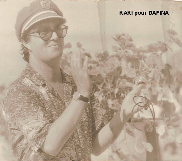 Photo de l'animation de Miss Tahiti en 1982. Khaki avec M. Zellag, ingénieur du son, l'un des principaux producteurs musicaux.