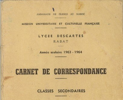 Carnet de correspondance du Lycée Descartes année scolaire 1963-1964.